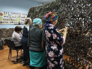 Каждую неделю эти женщины приходят в здание поселкового совета райцентра, где находится Совет ТОС «Южная околица», чтобы плести маскировочные сети, вязать носки, готовить домашнюю лапшу, шить белье для наших ребят, выполняющих свой солдатский долг в зоне специальной военной операции на Украине.