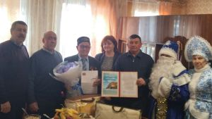 Поздравить юбиляра – Рашида Шарафиева приехали заместитель руководителя Исполнительного комитета по социальному развитию Елена Сороковнина и глава Старобарышевского сельского поселения Ильшат Зиганшин.