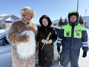 Сегодня в прекрасный солнечный день сотрудники Верхнеуслонского ГИБДД вышли на улицу с цветами.