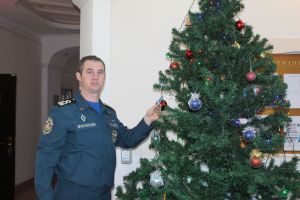 Новогодние открытки в виде ёлочных шариков украсили ёлку в администрации района.